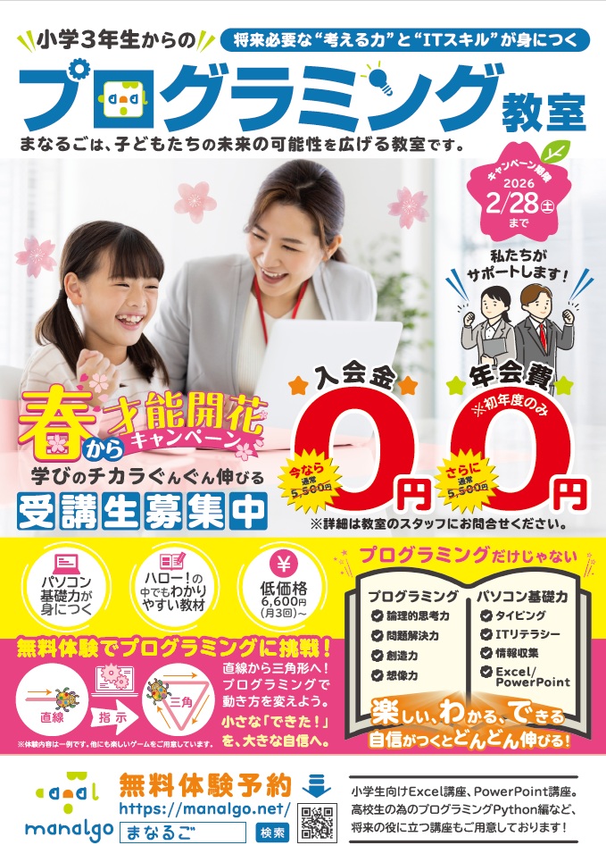 木場キッズプログラミング2月中は超お得なキャンペーン中!!